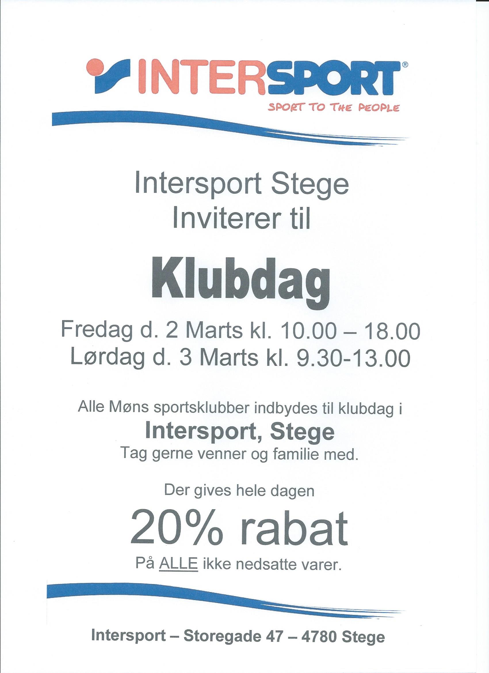 Lørdag d. 3 Marts kl. 9.30-13.00 hos Intersport, Stege